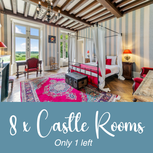 All Castle rooms are beautifully decorated, private double rooms. Four rooms have private bathrooms, and the other rooms share one bathroom between two rooms, so nearly private. We will allocate the rooms in order of booking.